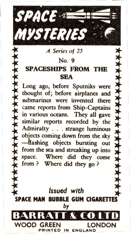 The soundtrack for Space Mystery Cards was made mixing around with a 78 RPM record set, Music Out Of The Moon by Leslie Baxter. Theremins, spacey vocals, lush orchestrations. Like that one guy in Raiders of the Lost Ark said before his face and body melted: “It’s so beautiful!” The flying saucer images are from a set of English Bubble Gum cards. There are some pretty unusual images.