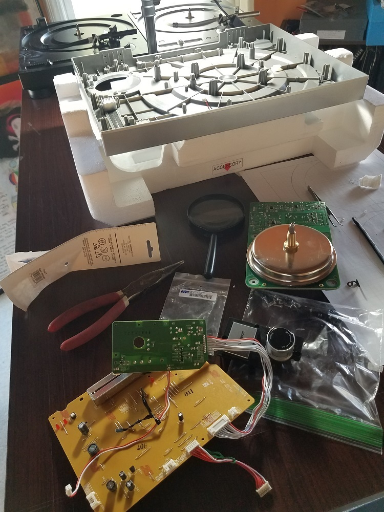 I found a very good deal on three of the same type of turntable that had all these criteria. So, I bought them with the knowledge that one will be completely taken apart and quite possibly ruined in the process of creating a new Mix-Master.