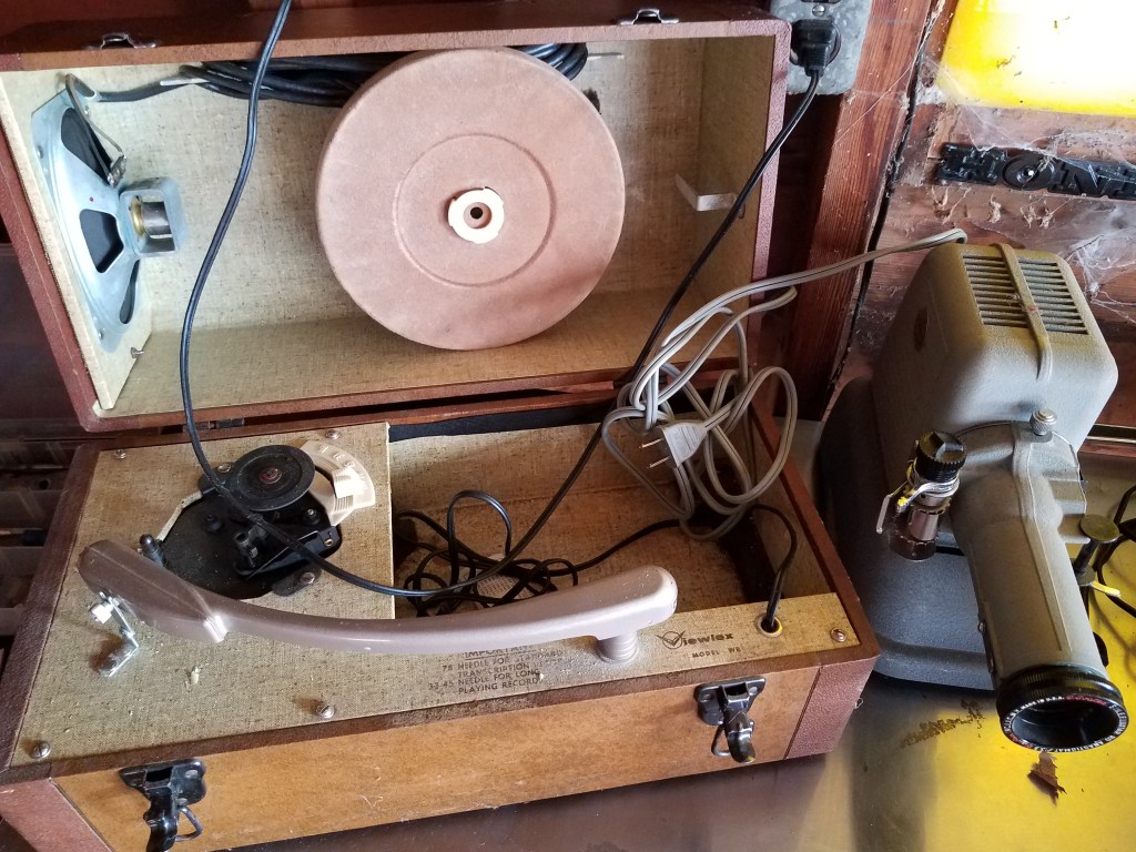 The second is a “Viewlex”. An early “multimedia system” consisting of a record player and film strip projector together in one box. This unit has more of a “kit” feel to it and looks much easier to take apart.