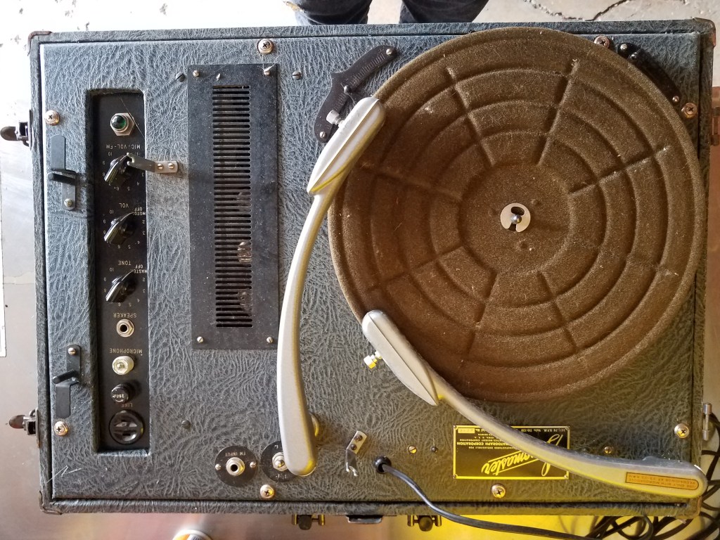 I bought my Fidelitone, the Ancient Mix-Master, in the early 2000’s. It was originally built and designed by George K. Culbertson of Minneapolis in the late 1930’s, completely rebuilt several times from period parts by Scott & Crew at Vintage Music Co, and tuned up several times in between by the same people. However it is an ancient machine – and deserves to rest and be revered in homage. The three tonearm, two turntable layout suited my style and past of Sound Collage radio perfectly and I’ve missed doing that kind of mixing. It’s also prevented Frames & Grooves from performing, as I haven’t had my tools, as it were. However, it was an 80-year-old system that had serious limitations, also like an old motorcycle. For the past few years, I’ve thought about making one or hopefully finding someone else to make it for me. The new one would ideally have contemporary features like pitch control and precise stopping and starting capabilities, standard DJ stuff, but also be able to play 78’s.