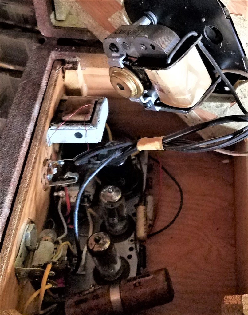 With Gaff tape and supports the power & speed assembly is moved to another corner and it all works! Both the speed & power selections work and the platter spins unobstructed!