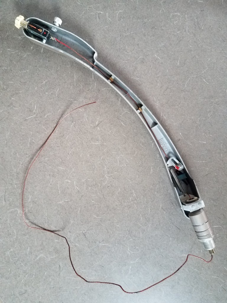 The wiring coming out of the tonearm is much simpler as well. I still need to find someone to build me a stand-alone gizmo box for this tonearm. It will need an amplifier and RCA outputs, as do the other tonearms. Not only a gizmo box to house the controls but maybe also for the tonearm to be secured onto.