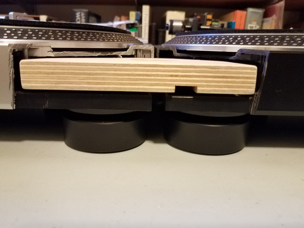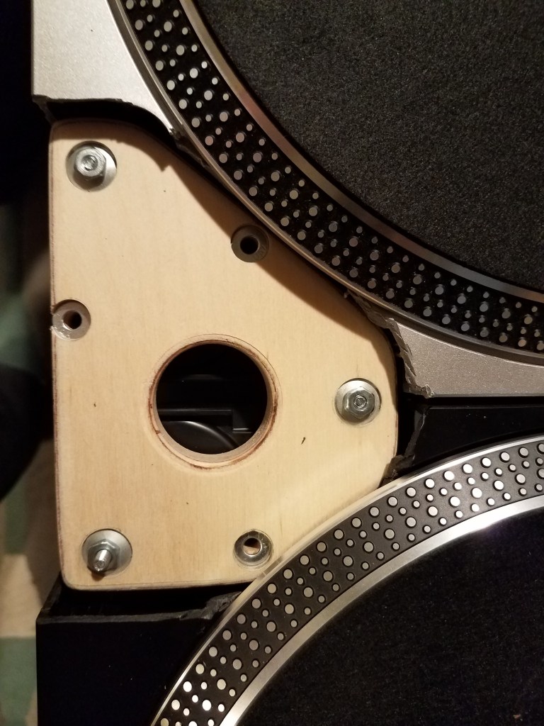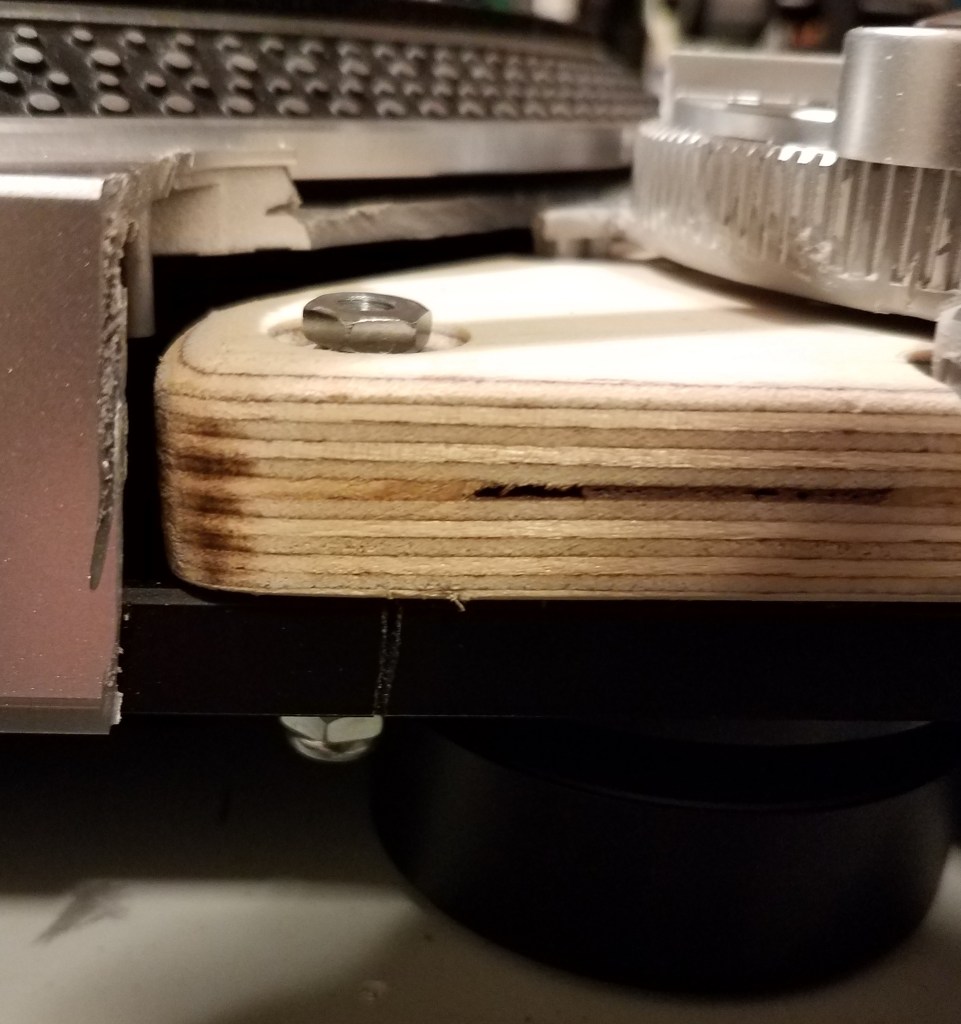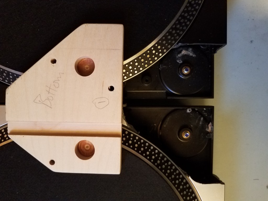 This was certainly one of the more rewarding parts of a very rewarding project. I needed to make a piece that I could both mount the third tonearm to and then attach that to the two turntables. Dang…